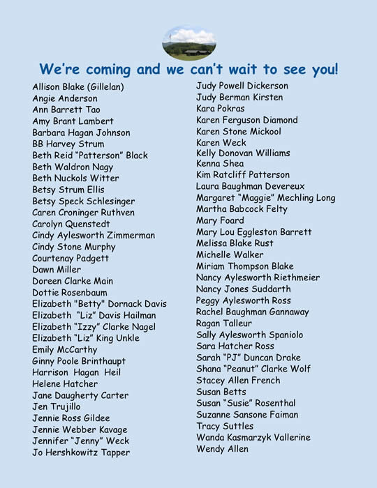 Reunion Committee Melissa Blake Rust, Allison Blake, Courtenay Padgett, Karen Stone Mickool, Kenna Shea, Jane Daugherty Carter, and Cindy Stone Murphy |